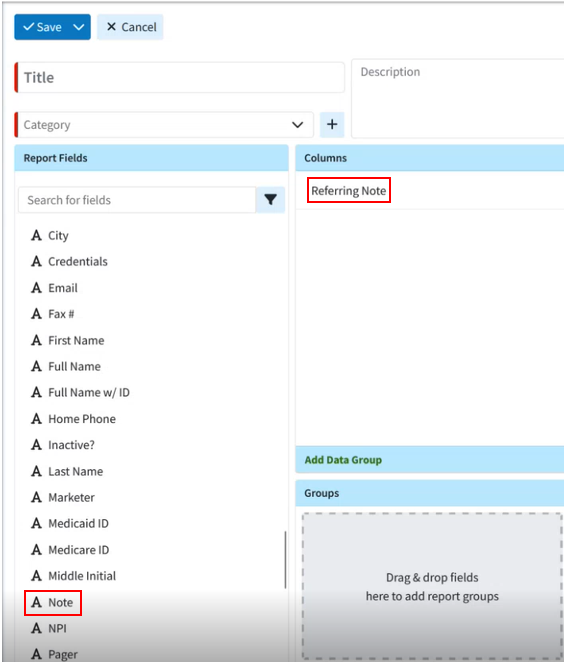 New Referring Provider Note Report Field